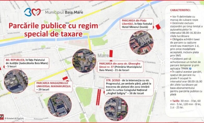 Parcări cu taxare specială în Baia Mare, din 16 martie: unde vor fi amenajate și cât vor plăti șoferii
